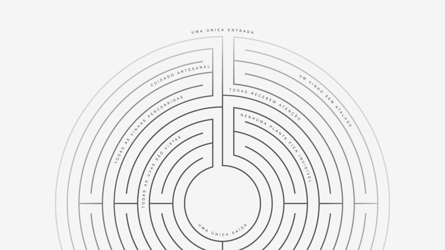 Precisávamos mostrar que o labirinto era o próprio vinhedo e o próprio processo, com uma única entrada e uma única saída que permitem acompanhamento integral e manual, e não uma metáfora conceitual.