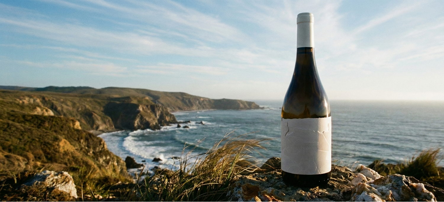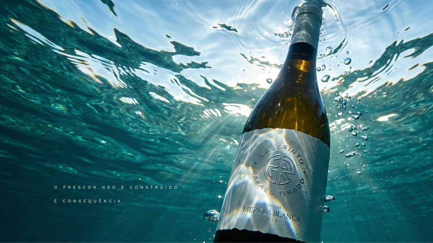 Precisávamos antecipar visualmente o frescor e a mineralidade que o vinho entrega, antes mesmo da degustação.