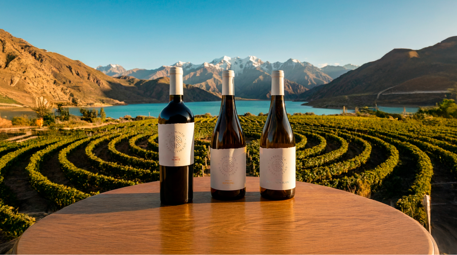 Laberinto é a vinícola chilena de Rafael Tirado, responsável pelo melhor vinho branco do Chile, com um vinhedo desenhado como um labirinto sobre solos vulcânicos, às margens do Lago Colbún, no sopé dos Andes.